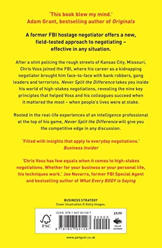 Never Split the Difference : Negotiating As If Your Life Depended on It ISBN: 9781847941497 Condition: New Mass-market paperback Language: English B-format paperback. THE HUGE INTERNATIONAL BESTSELLER A former FBI hostage negotiator offers a field-tested approach to negotiating – effective in any situation. ‘Riveting’ Adam Grant ‘Stupendous’ The Week ‘Brilliant’ Guardian ____________________________ After a stint…